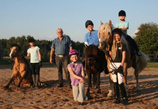 Pferdereiten am hauseigenen Reitplatz, für Fortgeschrittene auch Ritte ins Gelände möglich
