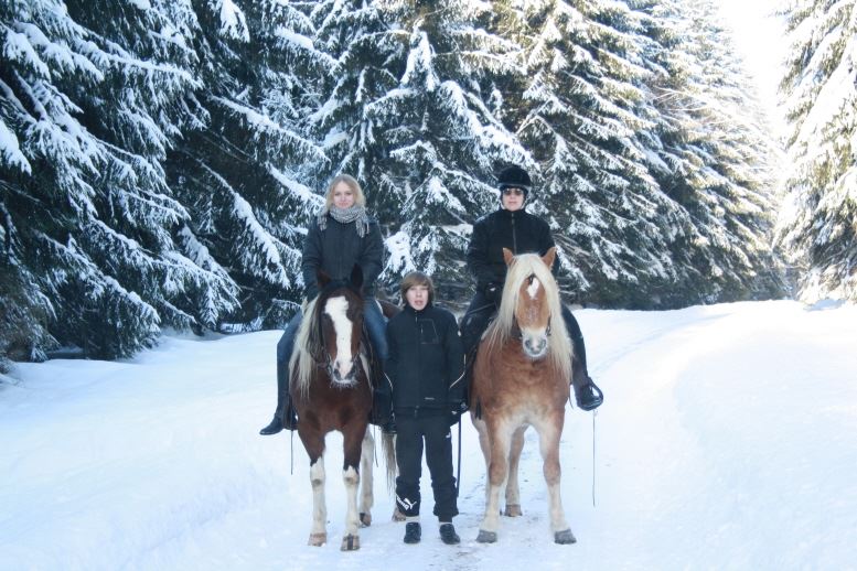 Pferdereiten am hauseigenen Reitplatz, für Fortgeschrittene auch Ritte ins Gelände möglich